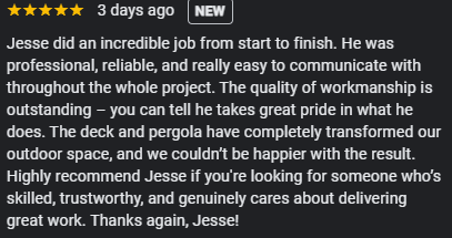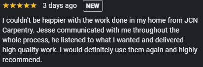 At JCN Carpentry and Building we always ensure to put client satisfaction first. However don’t just take our word for it, check out these reviews and follow the link to our google profile showing all of our happy customers! We care about our clients and love what we do!